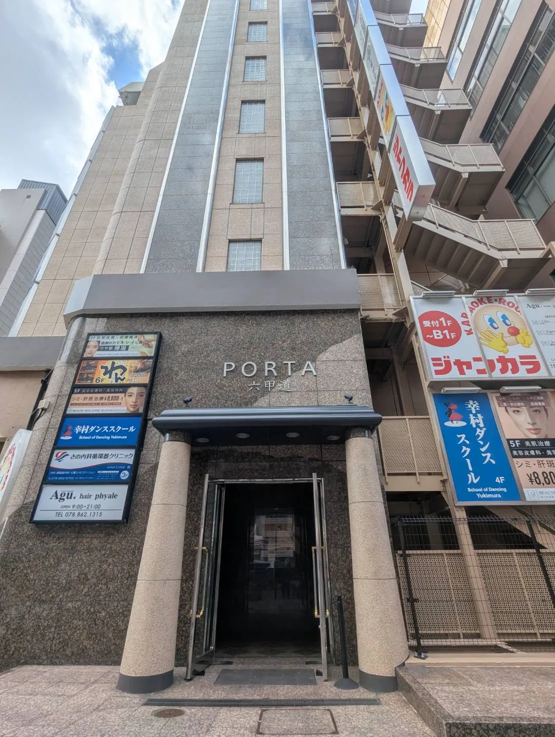⑧但馬銀行の横に「ポルタ第3ビル」が見えてきます。5Fまでお越しください。
